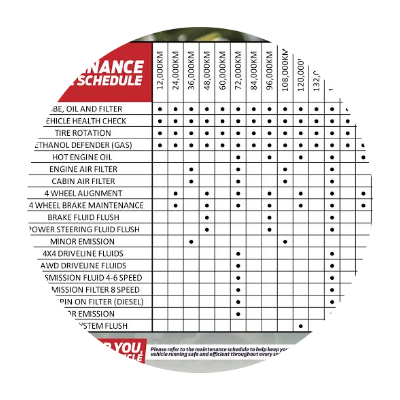 Which means we follow the manufacturer’s recommended service schedule for your vehicle, ensuring that it stays in top condition and maintaining its warranty.